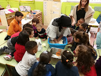 La semana pasada dos mamás muy expertas vinieron a las clases de 4 años a enseñarnos y a ayudarnos a hacer pan. Estuvimos muy atentos aprendiendo a mezclar los ingredientes, a amasar, a dejar reposar la masa "durmiendo" y llevarlo a la cocina para que se hiciera en el horno.